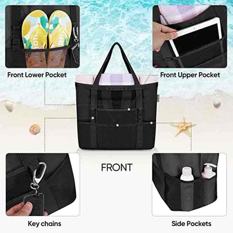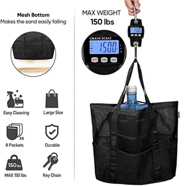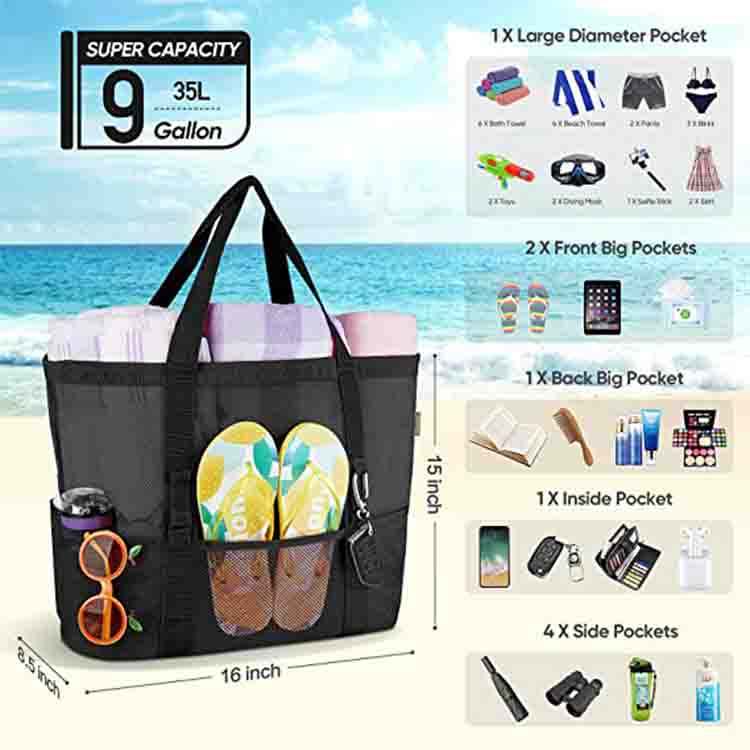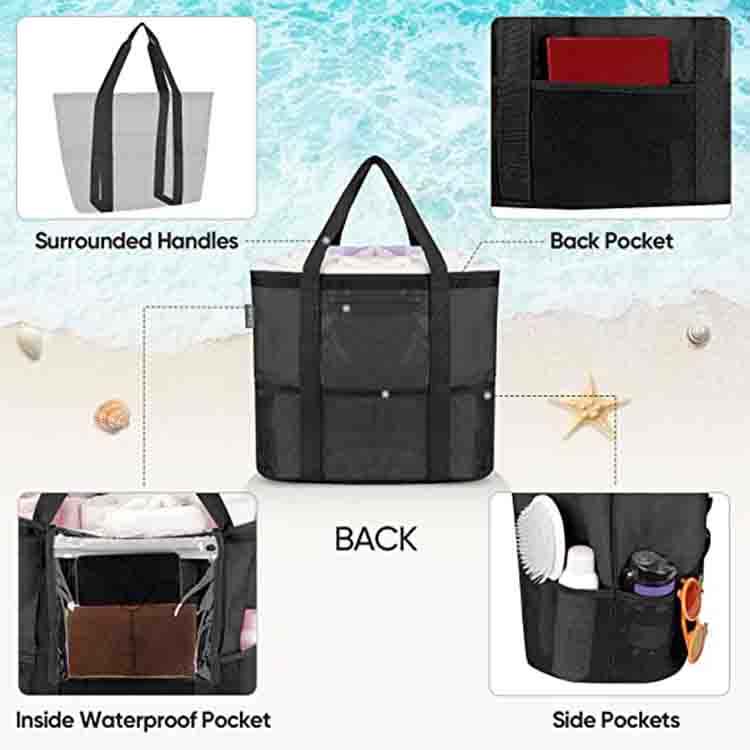 Large-sized Black Beach Bag, Pool Bag, Large-capacity Mesh Beach Tote Bag, for Toys, Towels, Flip-flops, Beach Bag