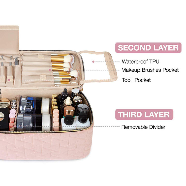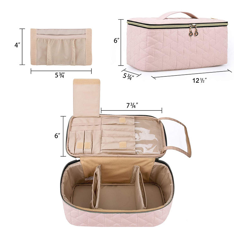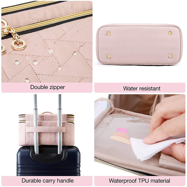 Double-layer Travel and Home Makeup Bag, Customized, Travel Mesh Toiletry Bag with Zipper, Customized Logo, Large-capacity, Pink, for Women