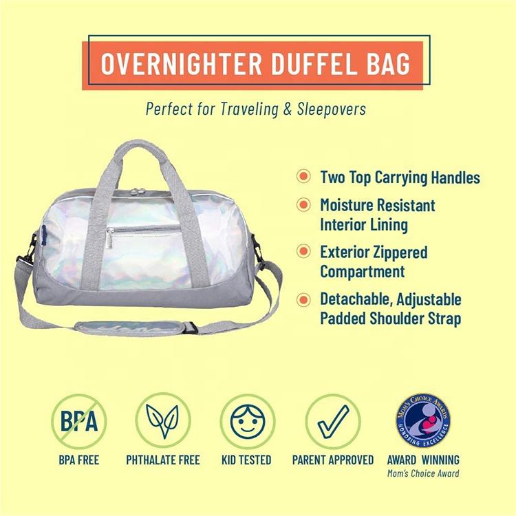 Holographic Duffle Bag for Children, Shiny, High-quality, Girls' Gym and Dance Bag, Boys' and Girls' Metallic PU Holographic Duffle Bag