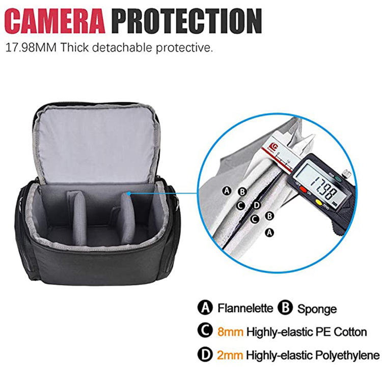 Other attributes are of Guangdong origin, china brand Hongzhao Model HZ-20215017 product name waterproof camera Bag material polyester color black logo accept custom logo style zipper closure function waterproof packing 1PC/poly Bag minimum order quantity 100pcs sample available sampling time 5-7 working days Packaging and shipping information Packaging details 1PC/poly + Carton Bag Port Shenzhen Port Unit of sale: single item single item Packaging size: 27X